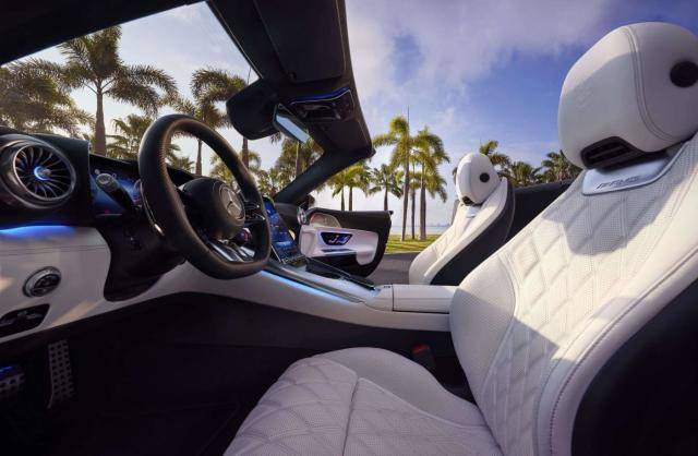 全新AMG SL 63 4MATIC+采用2+2座椅布局,这也是自1989年之后2+2座椅布局再次回归SL车型,不仅提供了更充裕的乘坐与储物空间,更为自由自在的敞篷跑车生活方式拓展出更多可能。标配的AIRSCARF头颈暖风系统,以及座椅加热、座椅通风等豪华功能,无论四季,都令每一次的敞篷之旅自在而惬意。其内饰也提供丰富的个性化配置:16款内饰选择,其中标配的Nappa皮饰AMG运动座椅提供7款常规配色和7款独具魅力的“MANUFAKTUR匠心高定”特殊配色,并可选菱形格纹缝线。一体式头枕配合优异的侧向支撑,将运动风格与豪华舒适体验融为一体。可选的2款AMG高性能座椅逐步提升了激烈驾驶时座椅的包裹性。饰板也提供AMG碳纤维饰件等4种选择,从而满足多种客户的个性化需求。