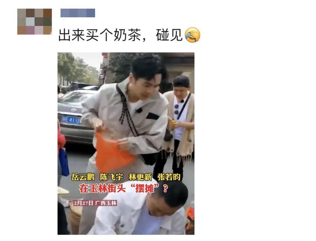 岳云鹏这次本来是来到了广西玉林录制综艺节目,和他一同录节目的还有几位男神林更新、张若昀等人,他们叫卖不久就回来了许多路人。卖完后,岳云鹏和林更新现身玉林街头,来到了一家在当地很受欢迎的粉店,端着两个大碗预备大快朵颐,可是由于两人很受欢迎,立刻就被路人围了起来。